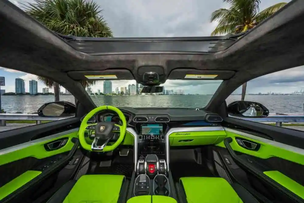 Inside, the Lamborghini Urus welcomes occupants into an opulent, driver-focused cabin adorned with premium materials and cutting-edge technology. The interior showcases fine leather upholstery, carbon fiber accents, and customizable finishes that reflect Lamborghini’s dedication to craftsmanship. Additionally, the advanced infotainment system integrates seamlessly with digital displays, offering intuitive controls, connectivity options, and real-time performance data. Spacious seating and generous cargo space ensure that the Urus remains practical without compromising the luxury expected from a Lamborghini. Every detail, from the stitching on the seats to the ergonomic layout of controls, is meticulously designed to enhance the overall driving experience.